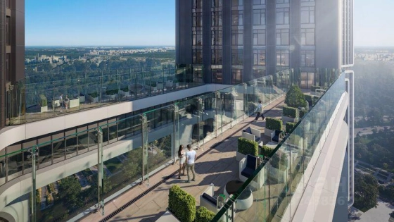 Инфраструктура дома включает в себя детские клубы в каждой секции, sky-мосты между секциями и уникальный sky-парк на крышах - с обзорной площадкой. Из дома открываются потрясающие виды на парк "Событие", МГУ, Сити, Поклонную гору и запад Москвы.